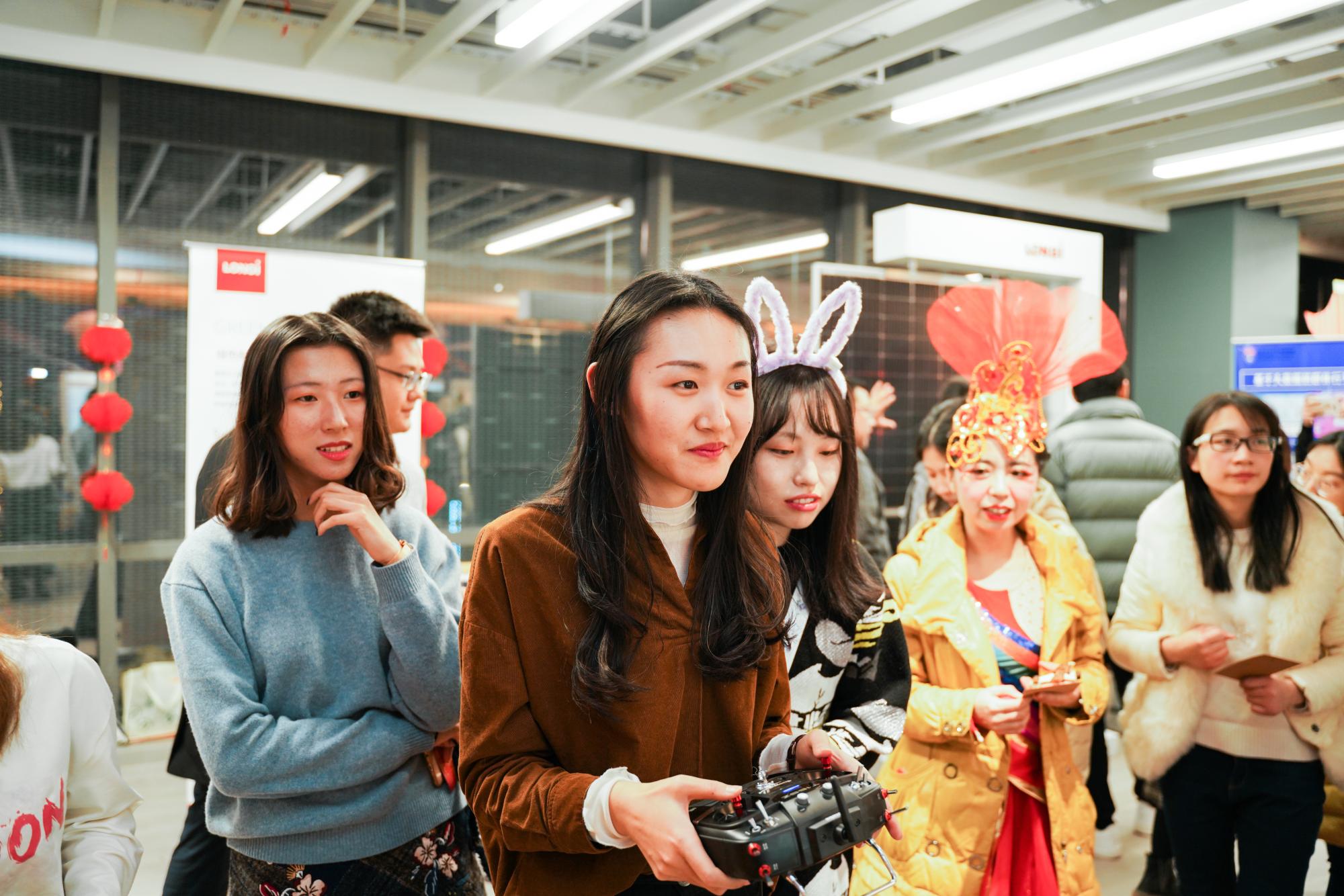 值得一提的是本次游园会的最后一个环节——“鼠年腾飞”,这一环节需要参与者需要利用遥控器操纵飞行器完成飞行游戏。这一环节展示了航空航天学院的学院特色,吸引力众多同学参与。校领导也被吸引驻足停留良久,感受虚拟飞行驾驶乐趣。