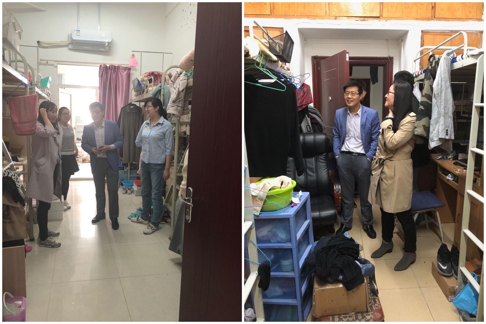 3月14日上午,为了能够及时了解新学期航天学院研究生的学习生活情况,助力青年成长成才,强化安全教育,督促整洁环境卫生,航天学院党委副书记陈永华、研工部武欣、研究生辅导员李昱静及三位兼职辅导员一行深入研究生宿舍开展调研走访。