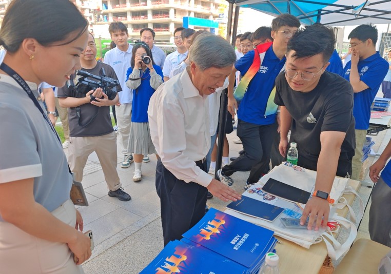 校长王树国带队赴创新港检查研究生迎新工作。在航天学院南区北院迎新点前,王树国校长亲切慰问了学院迎新志愿者,并寄语广大航院学子:“要以钱学森学长为榜样,继承和发扬好前辈们的精神,踏下心来做好科学研究工作,朝着面向国家重点需求,解决重点难题方向努力。”