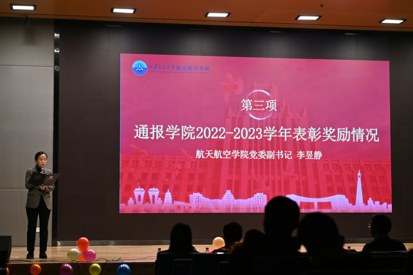 2022-2023学年表彰奖励情况》,2023年,航天学院共有229名同学获得各类奖学金,337名同学获得各类表彰奖励。她代表全院师生向全体获奖同学组织表示热烈地祝贺!希望全院所有同学以他们为榜样,不忘初心,砥砺前行。