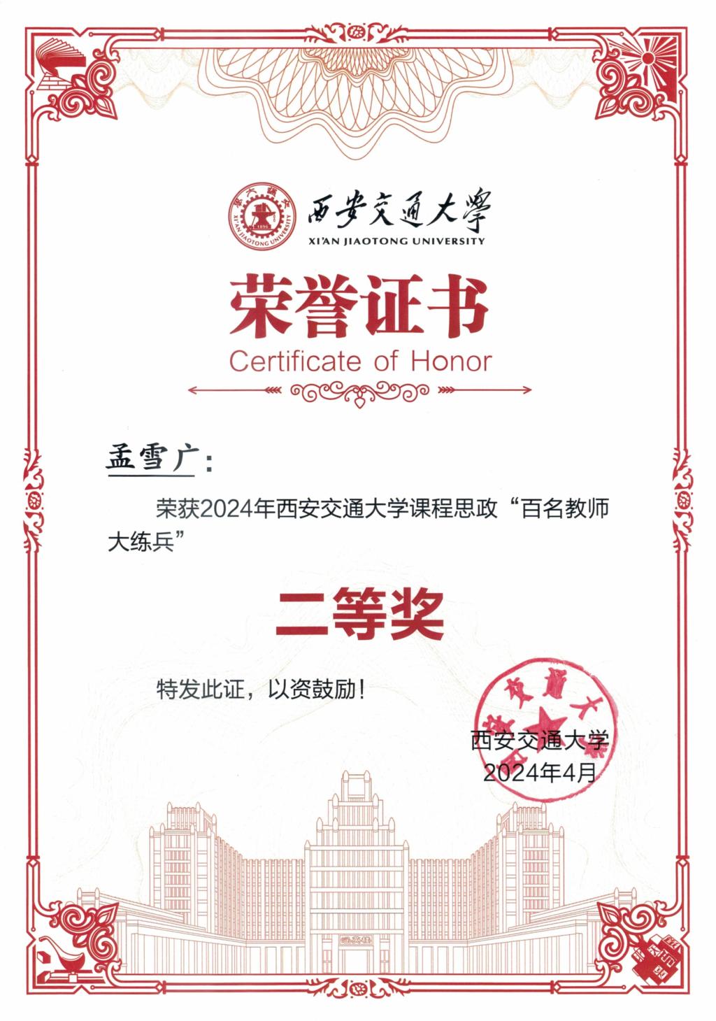近日,由教务处、研究生院、教师教学发展中心联合主办的第三届课程思政“百名教师大练兵”活动圆满落幕,我院空天系副主任孟雪广副教授荣获二等奖。