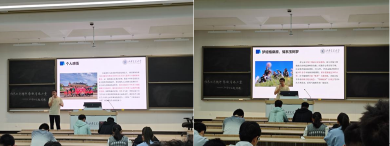高靖植重点讲述了他在敬老服务方面和暑期玉树支教的相关实践经历。针对中国人口加速老龄化的问题,他所在的团队通过线上线下结合的方式,努力构建体系全面、与时俱进的敬老服务体系。而在青海玉树为期二十一天的支教活动中,他对当地教育条件有了深刻的认识,同时也思考了优化教育资源配置、非物质文化遗产传承及当地旅游业发展等问题。高靖植表示,正是社团前辈们的精神激励,使他积极投身志愿公益活动中,个人的贡献虽然是微小的,但众多这样的力量汇聚起来形成合力,就能推动社会的进步。
