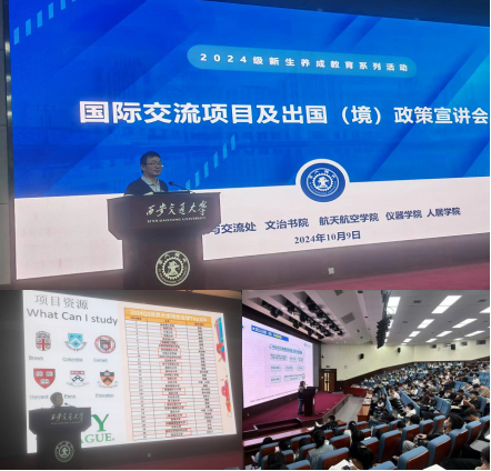 国际交流事务专员张力之详细介绍了学校国际交流项目的常用查询渠道方式、即将开展的寒假出国留学项目及相关准备。此外,她特别展示了学院2024届越杰力学专业路家理为代表的优秀学子出国交流风采,吸引了在场学生的浓厚兴趣。出国境事务专员闫婷介绍了学校师生出国境管理办法及国家公派出国留学项目政策,明确了出国前完成校内审批程序的纪律要求。她提醒学生申请留学时要合理安排学校学业时间与国外入学时间。