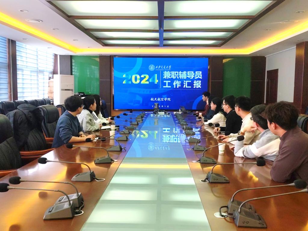 2024年度兼职辅导员述职工作会在兴庆校区教一楼第三会议室举行。本次会议旨在加强学院兼职辅导员队伍建设,集思广益,凝心聚力,明确2025年工作重点与发展目标。航天学院党委副书记李昱静,研究生辅导员李宇辰、王若宜,全体兼职辅导员参加会议。李宇辰主持会议。