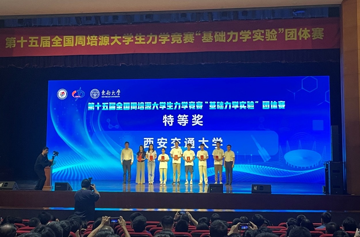 7月14日,西安交大学子在第十五届全国周培源大学生力学竞赛“基础力学实验”团体赛中荣获全国总冠军、唯一特等奖,实现了学院周培源力学竞赛特等奖零的突破,同时西安交大取得下一届比赛承办权,彰显了学校的优良的育人成果、学生扎实的力学功底和卓越的实践创新及团队协作能力。