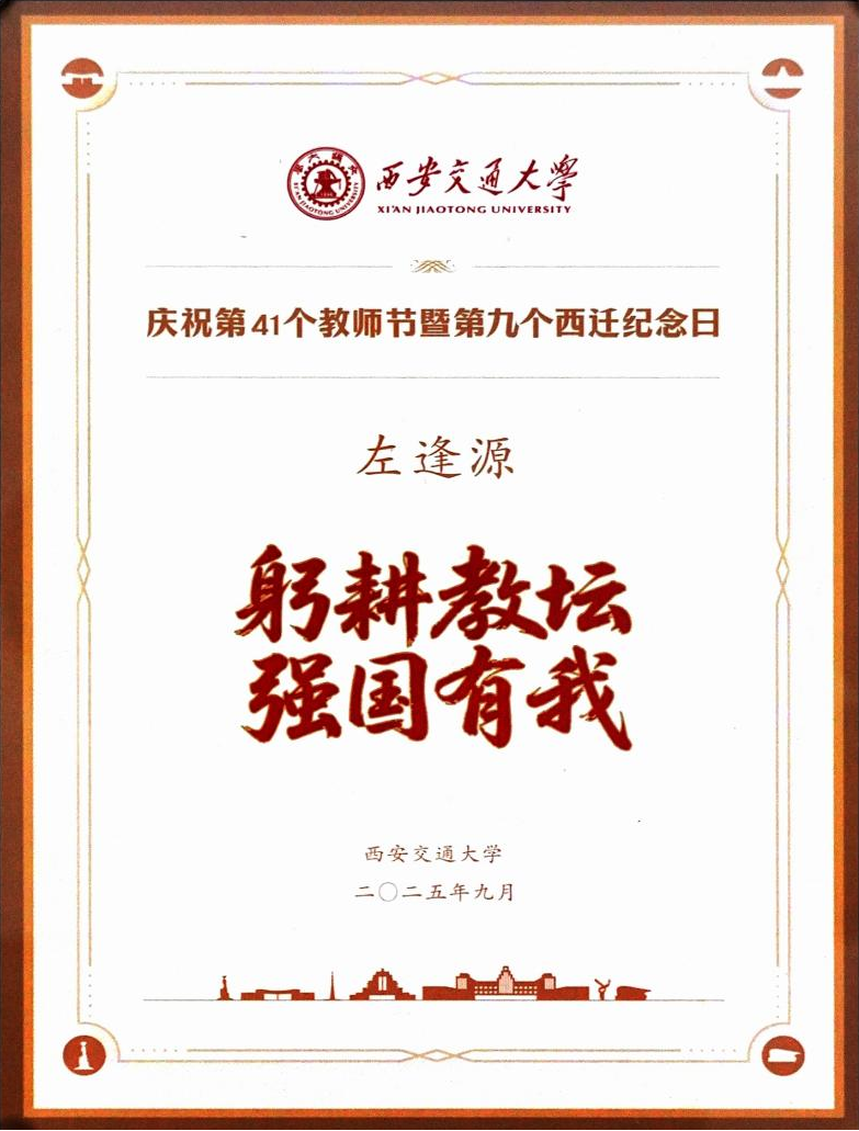 “教育是‘静待花开’的温柔旅程,我只是在学生‘破土生长’时,做了那一缕微光。”谈及所获荣誉,左逢源始终保持谦逊——在他眼中,每一份成绩的背后,都是学生不甘放弃、奋力拼搏的结果,而自己只是尽了教育者的本分。 从教多年,左逢源始终坚守学生成长“关键节点”:他关注个体差异,让“因材施教”落地;他注重分层指导,让“阶段赋能”见效;他倡导学践融合,让“知行合一”扎根。他用务实行动,构建多维度、全过程的人才培养体系,陪伴一届又一届本科生从“懵懂青涩”走向“成熟自信”,成长为航天航空领域的“后备力量”。 面向未来,左逢源表示,将继续秉承申胜平教授团队“力行慧质,化育天工”的育人理念,扎根西安交大育人沃土,不断探索创新型本科人才培养新路径。他愿继续做学生成长路上的“点灯人”——以热爱为灯芯,以坚守为灯油,点亮更多学子空天梦想,为西安交大本科教育高质量发展、为国家航天航空事业育更多“可堪大用、能担重任”的优秀人才,在育人路上续写新篇。