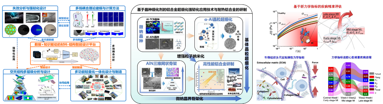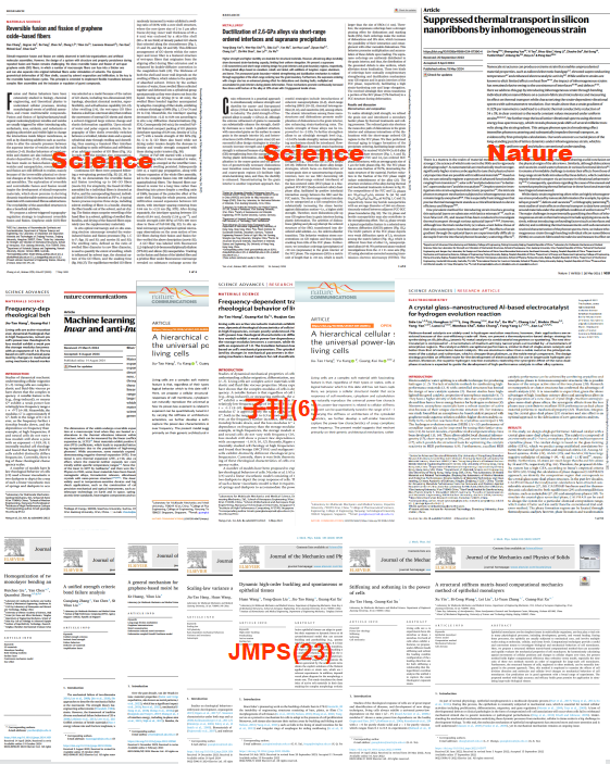 胸怀“国之大者”,锚定解决“卡脖子”问题,是交叉力学团队始终坚守的目标航向与行为准则。围绕空天高性能复合材料多维度变形与响应、生命体重大疾病时空演化过程中的力学难题,团队创新提出基于多尺度力学分析与人工智能的材料设计和疾病精准评估新范式,在多个领域实现突破。 在材料研究领域,团队成功发展微结构敏感强度和挠曲声子热输运理论,研发出2.6 GPa强韧性合金、强韧化及智能化氧化石墨烯纤维,为高端装备材料升级提供关键技术支撑;在生命科学领域,建立考虑细胞和组织结构的多级结构理论,清晰阐明细胞幂律粘弹性行为的形成及调节机制,并创新性提出疾病精准评估的力学新指标,为医学诊断开辟新路径。 亮眼的科研成果获得国际学术界高度认可,团队研究发表于Science(2篇)、Nature等一系列国际顶尖期刊,相关进展还被基金委基金要闻、科学网、Physics World等权威平台广泛报道。近五年,团队先后承担国家自然科学基金重大项目、国家重点研发计划、国家自然科学基金杰出青年基金、国家自然科学基金优秀青年基金、陕西省杰出青年科学基金等重要项目,科研实力持续领跑。 与此同时,团队积极推进产学研深度融合,主持建立“西安交大-成兴国投无序新材料实验室”“成兴国投—西安交大医疗器械力学交叉与健康诊断中心”两个千万元级校企研究院,加速科研成果从“实验室”走向“生产线”。凭借突出贡献,团队先后荣获陕西省三秦创新团队、奈飞工厂