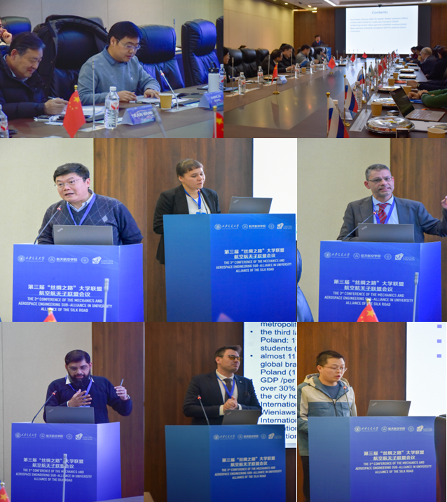 院长助理王正锦主持会议,来自子联盟院校的6位专家学者与分享了各自研究领域的成果与思考:香港科技大学徐昆教授做了题为“航空航天应用中的计算流体动力学”(Computational Fluid Dynamics in Aerospace Applications)报告,莫斯科物理技术学院Zavialova Natalia教授做了关于“数学建模在卫星优化中的应用”(Application of mathematical modeling to satellites optimization)的报告,米兰理工大学Alessandro Croce教授做了题为“课堂之外:课外活动在学业发展中的作用”(Beyond the Classroom: The Role of Extracurricular Programs in Academic Development)的报告,古拉姆・伊沙克・汗工程科学与技术学院Khalid Rahman教授做了题为“用于宽带超表面吸收体及印刷电子应用的柔性基底导电油墨喷墨印刷”(Inkjet Printing of Conductive Inks on Flexible Substrates for Broadband Metasurface Absorbers and Printed Electronics Applications)的报告,波兹南工业大学Andrzej Jan Miklaszewski做了关于“机械合金化-热压制备NiAl-xWC复合体系的新视角”(The new perspectives of NiAl-xWC composite system prepared mechanical alloying and hot pressing)的报告,奈飞工厂