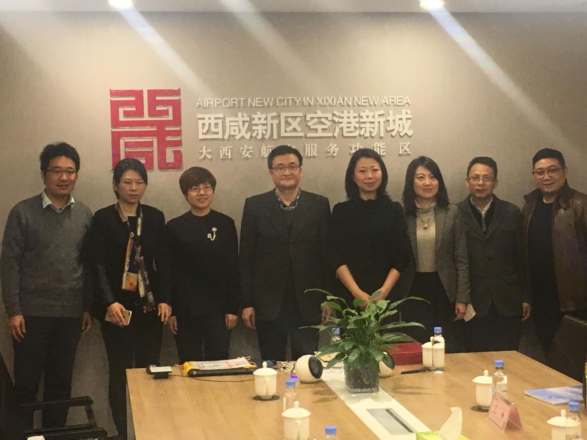 申胜平院长带队,一行5人访问了西咸新区空港新城管委会,与管委会主管领导和相关部门负责同志就双方战略合作相关事宜进行深入磋商。
