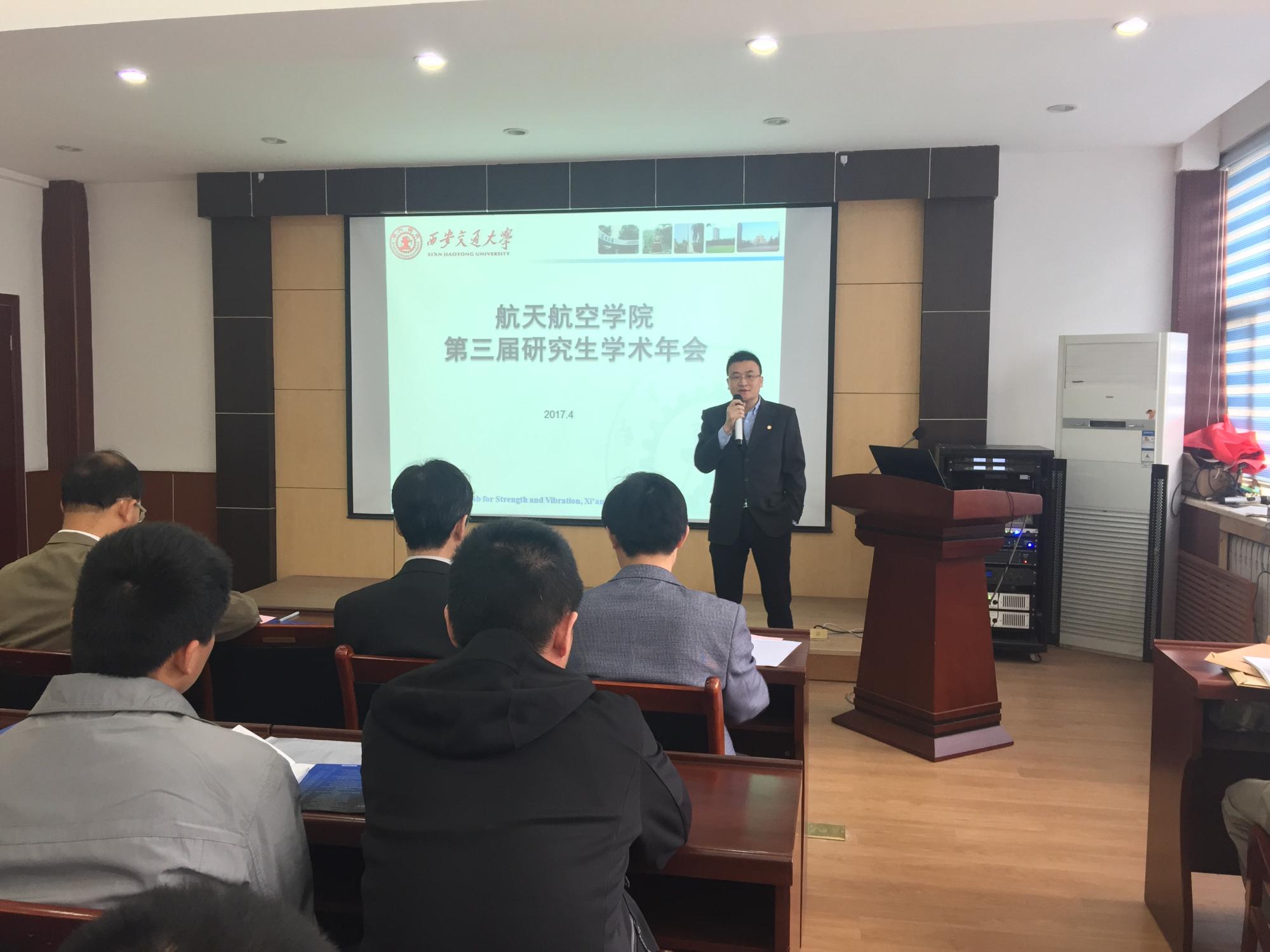 第三届研究生学术论坛在学院第五会议室隆重举行。出席此次学术年会开幕式的领导有航天学院院长申胜平教授、航天学院党委书记徐自力教授、副院长李跃明教授、党委副书记陈永华副教授,空军工程大学航空航天工程学院研究生大队三队队长周友运中校,参加此次开幕式的还有空军工程大学、西北工业大学以及我校航天学院的研究生代表等。